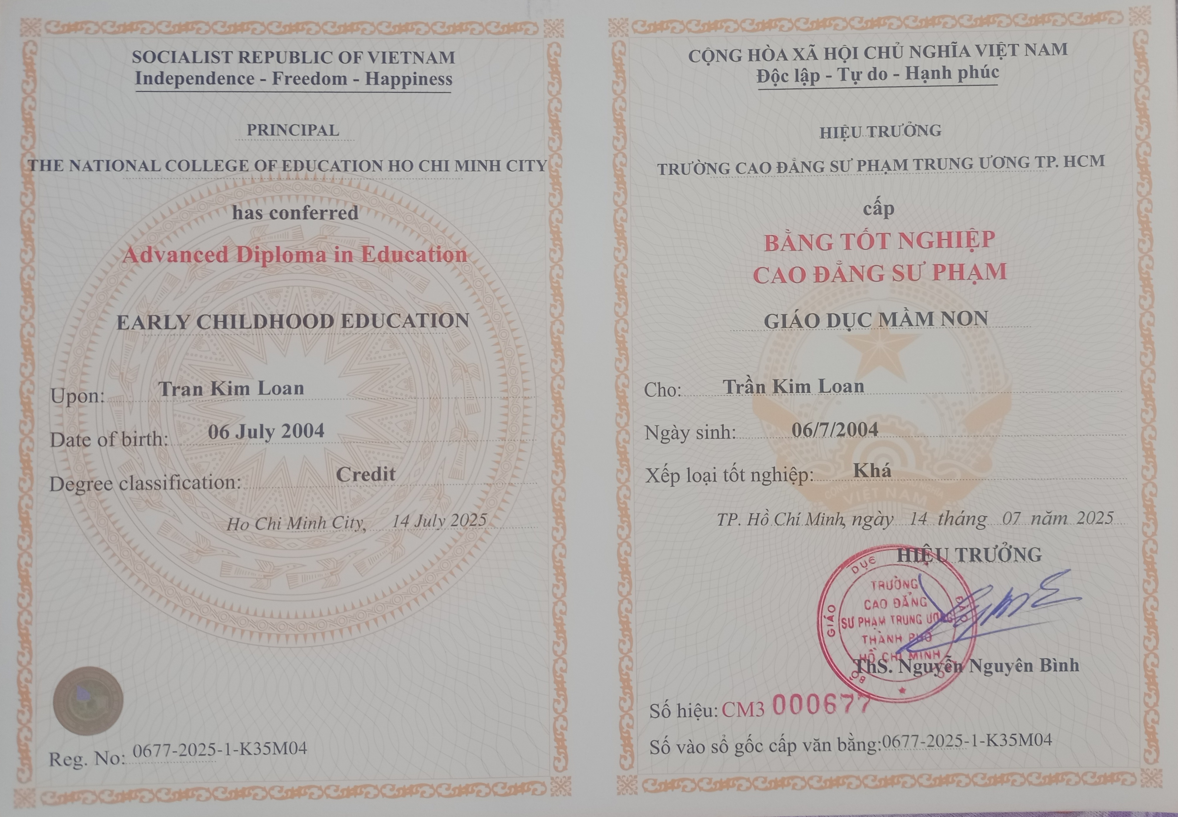 Dạ em tốt nghiệp chuyên nghành GIÁO DỤC MẦM NON